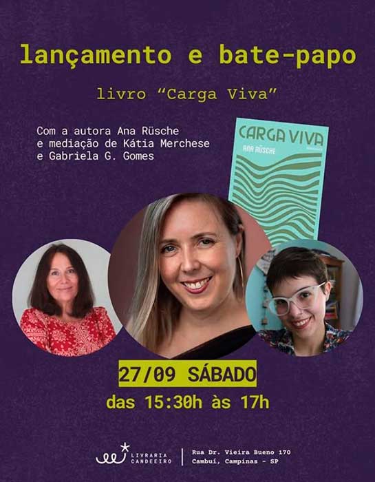Lançamento do romance Carga Viva, de Ana Rüsche