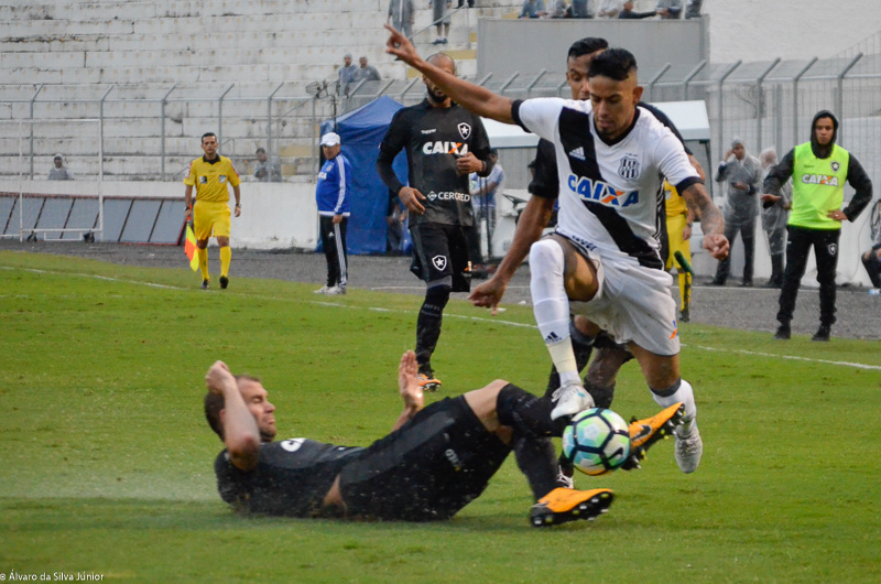 O Botafogo chegava em bolas cruzadas e lançamentos em profundidade. A Ponte apostava nas arrancadas de Nino Paraíba e nas bolas para Sheik. No final do primeiro tempo a Ponte quase foi para o intervalo em vantagem. Danilo dominou a bola na área, girou e bateu forte para boa defesa de Jefferson. O árbitro nem permitiu a cobrança de escanteio e encerrou o primeiro tempo para bronca da torcida presente no Moisés Lucarelli.