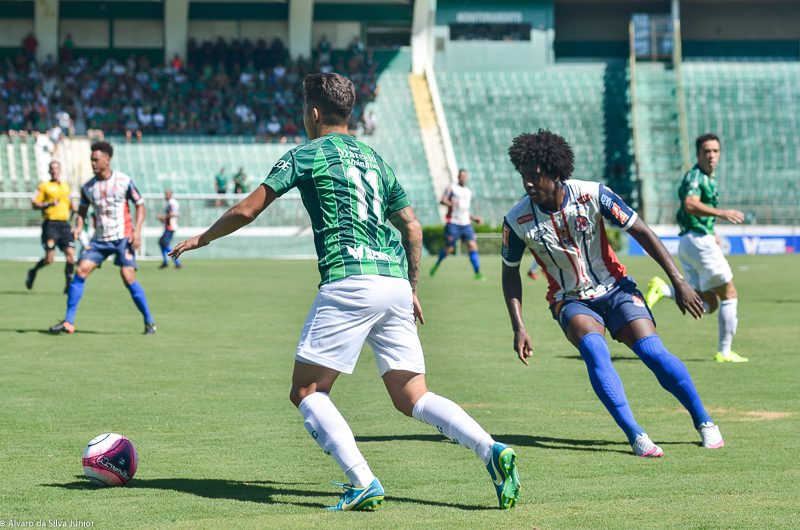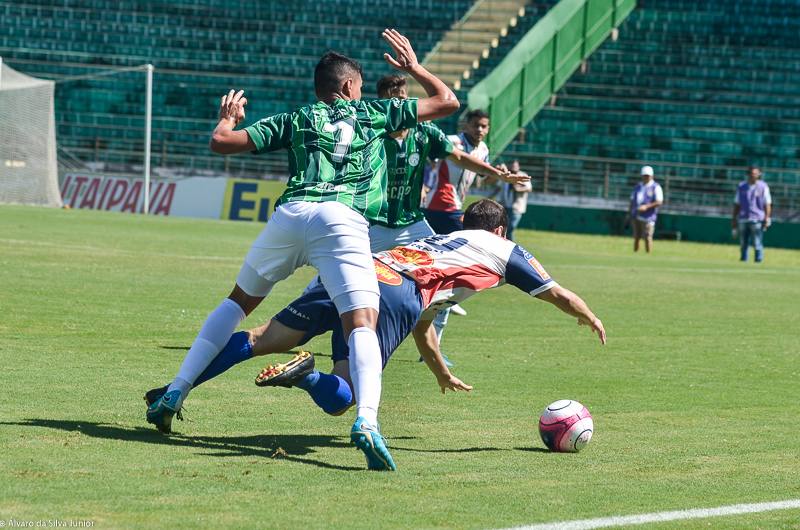 Aos 18′, o atacante Bruno Mendes quase abriu o marcador após um vacilo de Thiago, mas o atacante acabou tocando para fora. O gol era questão de tempo. Aos 19′, Denner cobrou escanteio e a zaga cortou, o volante cruzou novamente e o goleiro Thiago Passos aceitou. Bugre na frente. O gol aumentou ainda mais o ímpeto do Alviverde e o segundo aconteceu logo em seguida e, de novo, com Denner. Aos 23′, Erik disparou em contra-ataque, tocou para Rondinelly, o meia cruzou e Denner pegou de primeira para ampliar.
