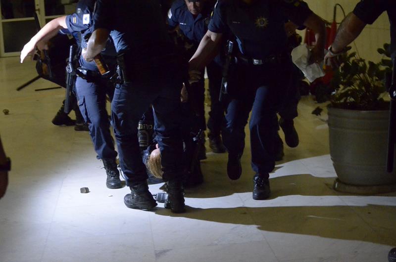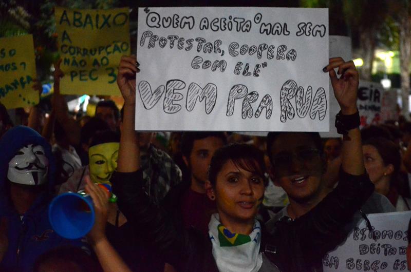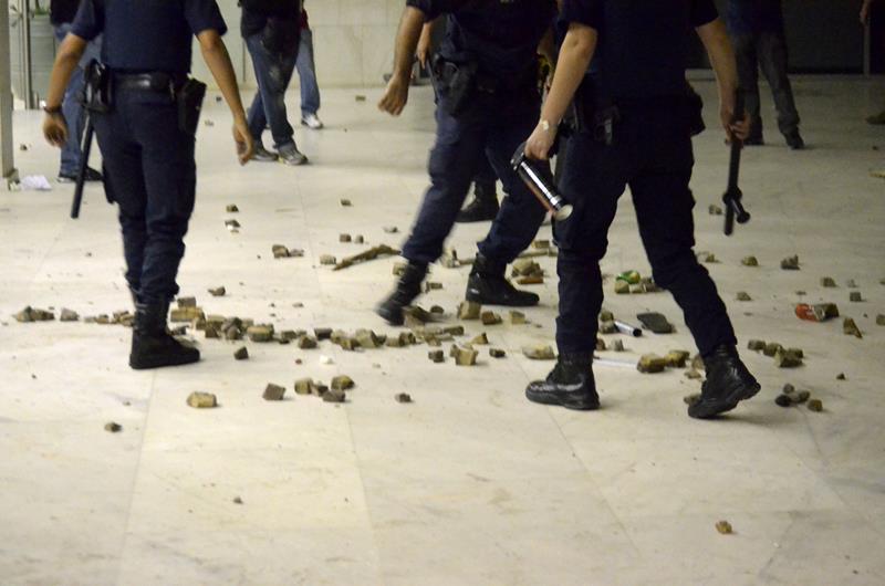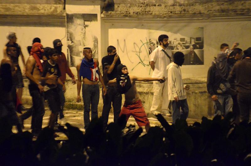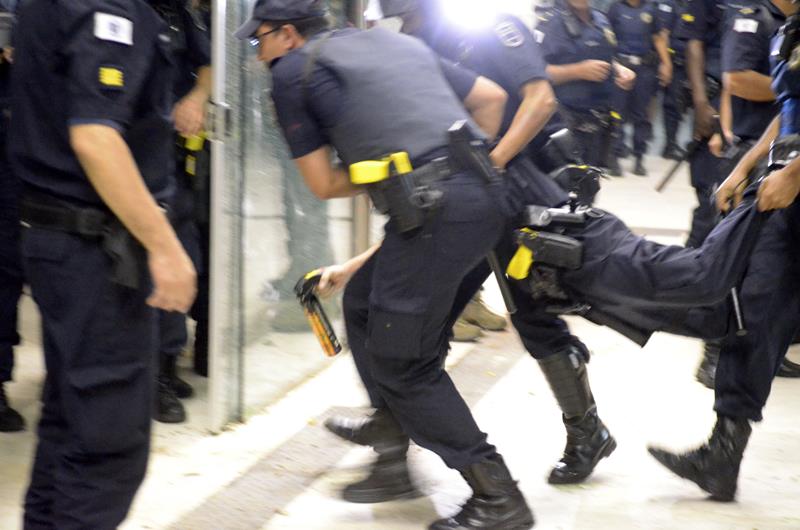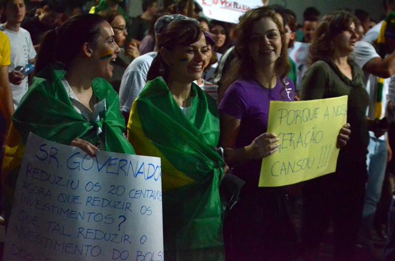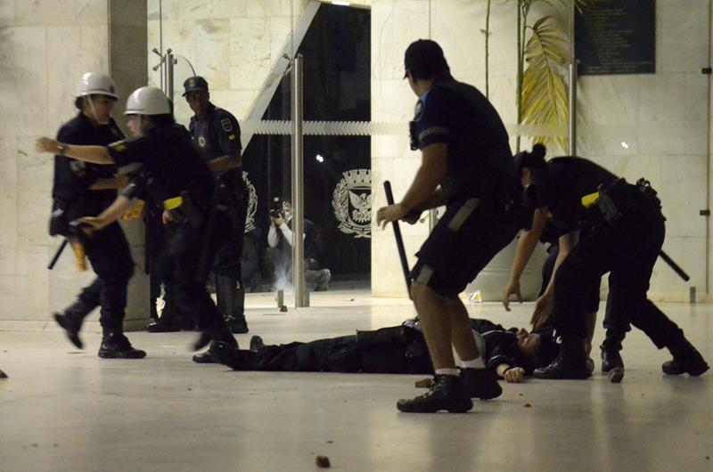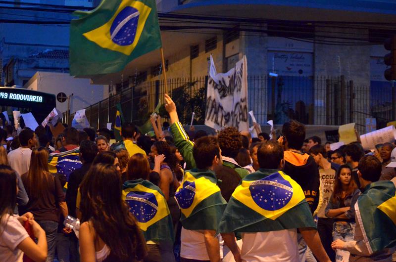 Tudo ia bem até a chegado ao Paço Municipal, onde alguns baderneiros começaram a atirar bombas caseiras e pedras. A Guarda Municipal acuada começou a lançar spray de pimenta, alguns manifestantes do bem e jornalistas que estavam próximos também foram atingidos.