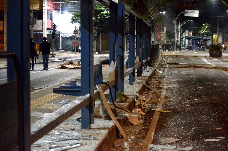 Daí pra frente foi um cenário de guerra, com vários guardas municipais sendo feridos por pedras e manifestantes cometendo vandalismo. A Policia Militar demorou a chegar e quando chegou a cena de guerra se completou com mais enfrentamentos. O que era pra ser uma festa da democracia se tornou palco para bandidos se manifestarem. Lojas saqueadas e patrimônio público destruído, este era o cenário do caos na noite do dia 20 de junho em Campinas.